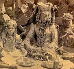 Ouled Nail, with her robe of vivid crimson embroidered in gold, her soft silk veil of the palest blue…the wide gold girdle with its innumerable chains and pendants, the necklaces of coins, the bracelets of silver and gold, and the crown-like head-dress, is the personification of the gorgeous East.  –  Frank Edward Johnson, “Here and There in Northern Africa” (The National Geographic Magazine, January 1914) The Ouled Nail (pronounced “will-ed nah-eel”) were a Berber tribe who inhabited the Atlas Mountains of Algeria; their origins are lost to history, and though they were converted to Islam in the 7th and 8th centuries CE along with the other Berbers, they retained a number of distinctive characteristics which set them apart until well into the 20th century.  Chief among these was the status of their women, or Nailiyat; not only were they free from purdah, in adolescence they actually went down into the cities unescorted by men and worked for a time as dancers and prostitutes in order to amass a personal fortune with which to purchase property at home, and only after they had done this would they seek marriage.  The Nailiyat were thus not only remarkably independent by the standards of tribal cultures or Muslims, but even by the traditional standards of European cultures; they enjoyed a freedom unknown by any but the wealthiest, boldest women before the “sexual revolution”, and indeed greater than that of many “liberated” women to this very day. The Nailiyat were not forced or expected to practice dancing and harlotry, but it was more common than not and the trade ran in families.  Daughters learned dancing and the erotic arts from their mothers, and about the age of 12 started travelling down to the cities for part of the year, accompanied by their mothers, grandmothers or aunts (who not only advised and helped them, but also kept house).  They typically returned home seasonally, and as they grew older and more experienced they might sometimes make the trips with sisters or cousins of similar age instead, or later graduate to escorting younger relatives.  After five to fifteen years of work (depending on the individual’s aspirations and level of success) a Nailiya usually returned home permanently, purchased a house and garden, and began to accept suitors; after marriage she settled down to the normal domestic role and marital fidelity which are traditionally expected of women throughout the world, and when she had daughters of her own she trained them and accompanied them down to the cities in their turn.  Women of the Ouled Abdi and Ouled Daoud tribes sometimes worked as dancers and whores as well, but unlike the Ouled Nail they only did so after being orphaned, divorced, widowed or otherwise cut off from financial support.